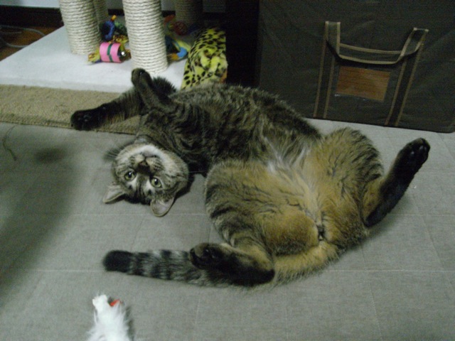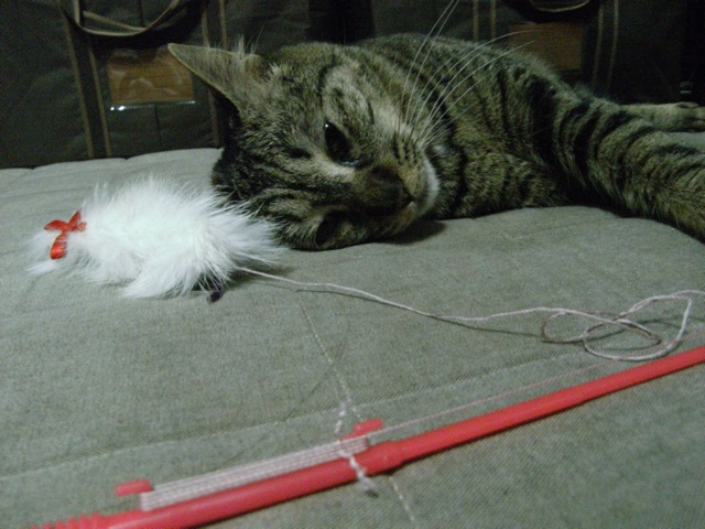ほんの15分ぐらいおもちゃでエキサイトすると、ダルくなって横になっちゃうの。